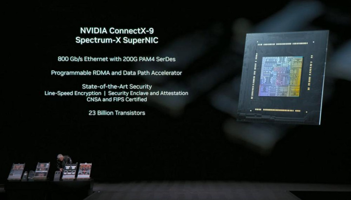 (4)NVIDIA ConnectX-9 SuperNIC:每颗GPU提供1.6Tb/s带宽,针对大规模AI进行了优化,具备完全软件定义、可编程、加速的数据路径。